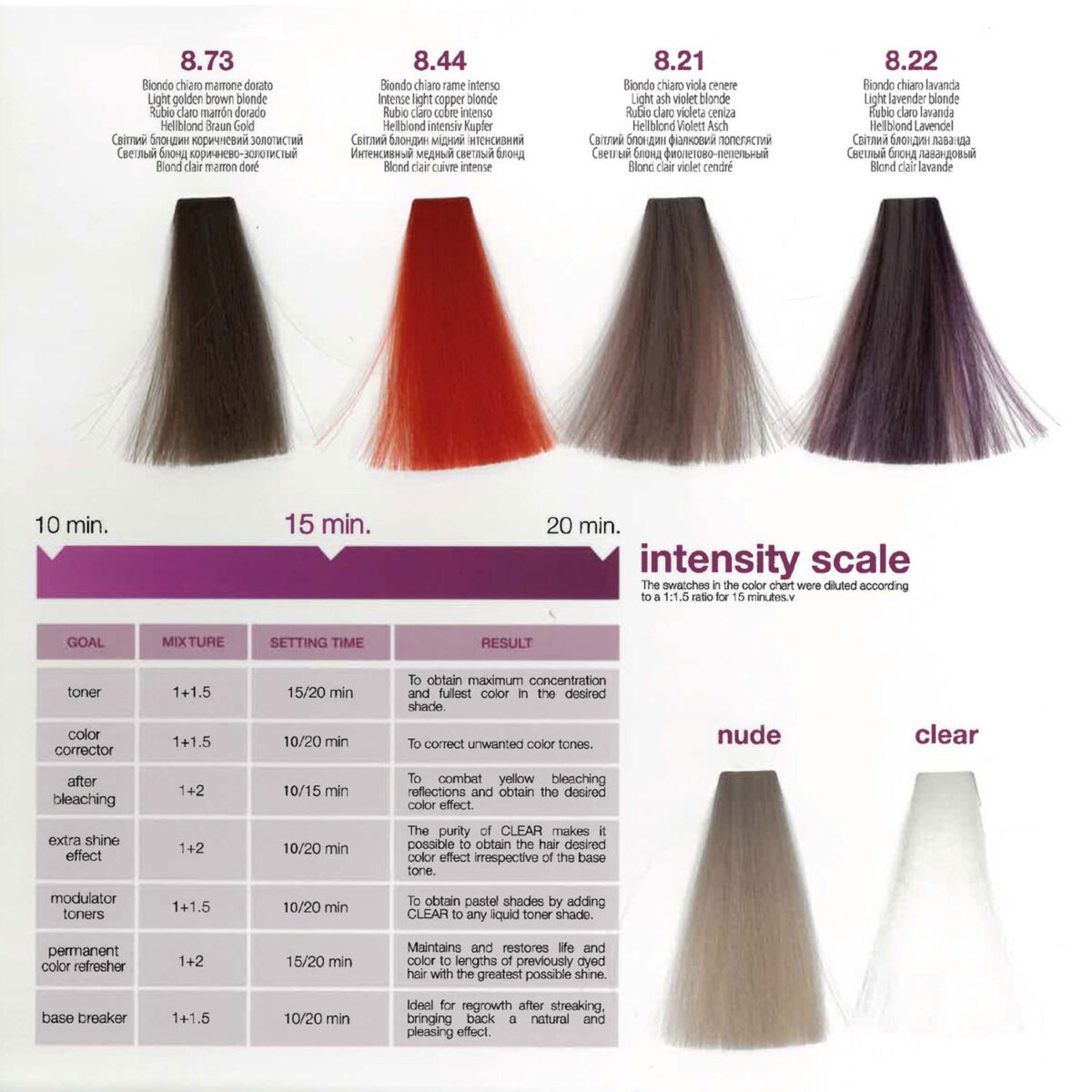 - 8.44 = intense light copper blonde