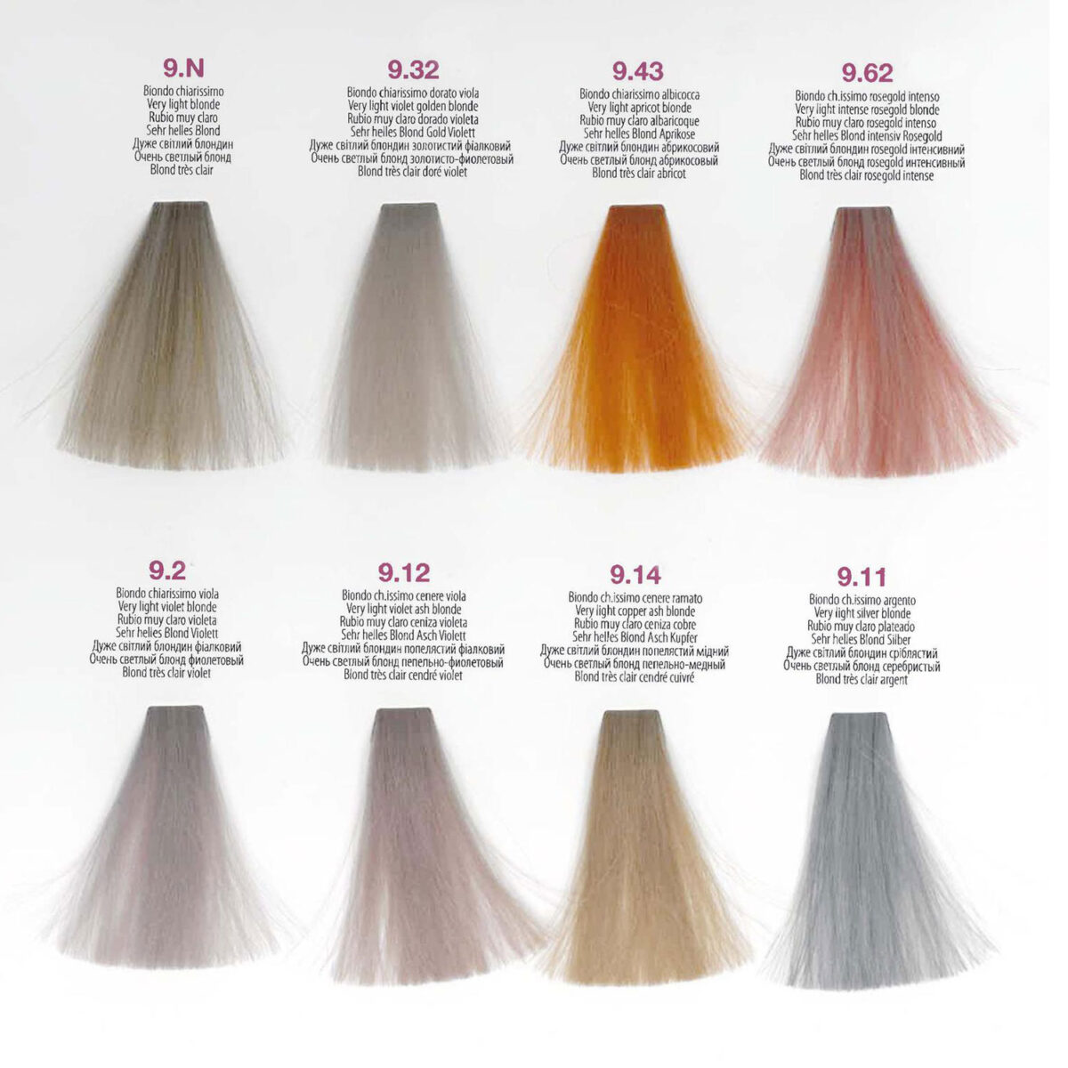 - 9.2 = very light violet blonde